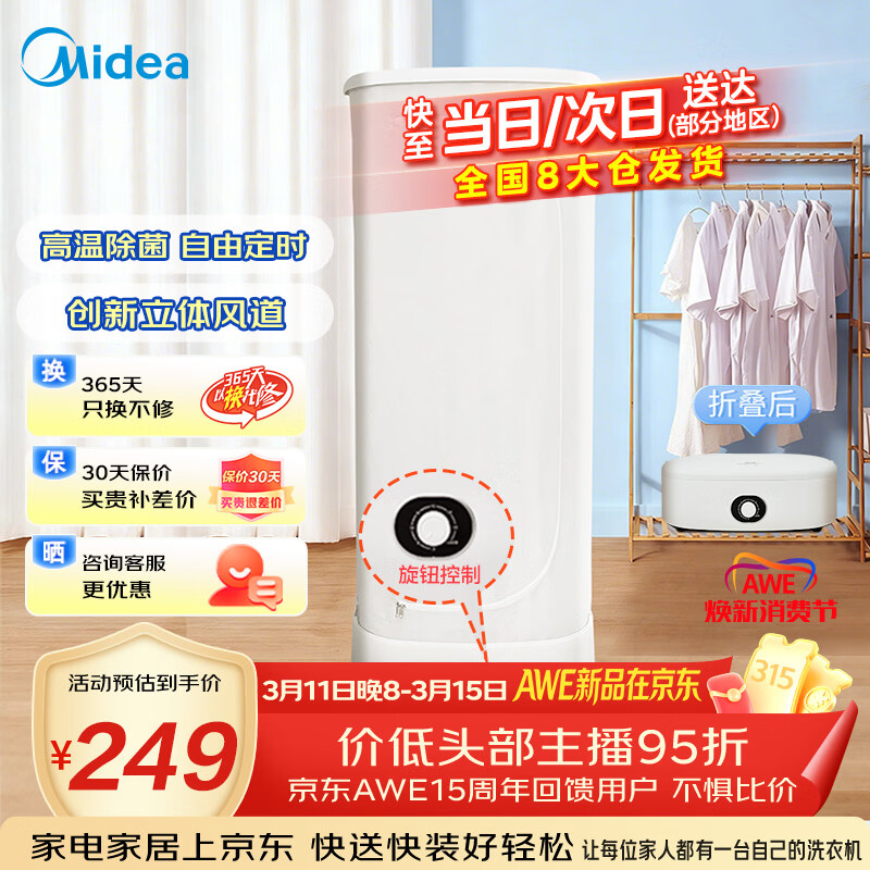 美的(Midea)折叠干衣机内衣消毒70L家用布罩便携定时暖风 小型烘衣机烘干机旋钮折叠干衣机MZD70H0E