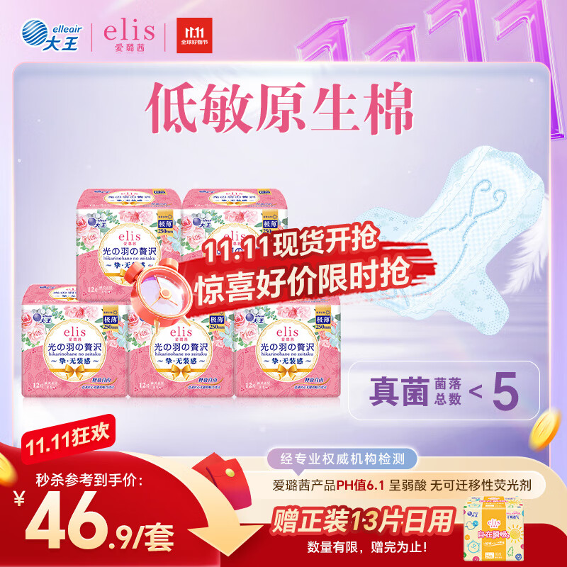 爱璐茜(elis)大王光羽奢适日用卫生巾京东自营250mm60片极薄姨妈巾京东自营