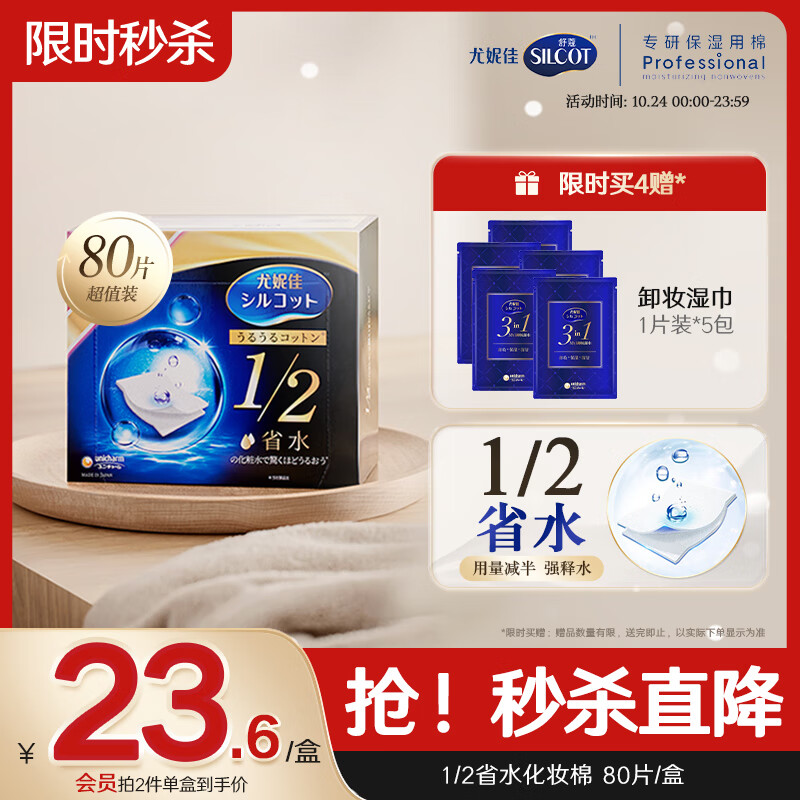 舒蔻Silcot尤妮佳1/2省水湿敷棉化妆棉敷脸保湿卸妆棉水疗增量装自营80枚
