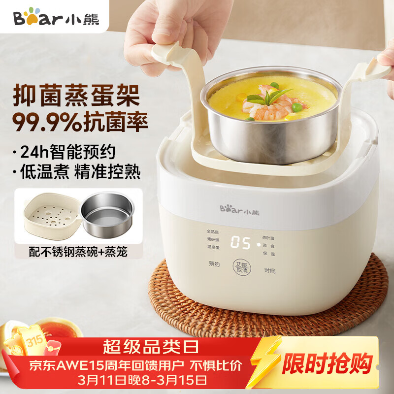 小熊(Bear)煮蛋器 蒸蛋器 温泉蛋机 智能定时自动断电 煮鸡蛋神器溏心蛋茶叶蛋 小型蒸锅早餐一体机ZDQ-T10Y2