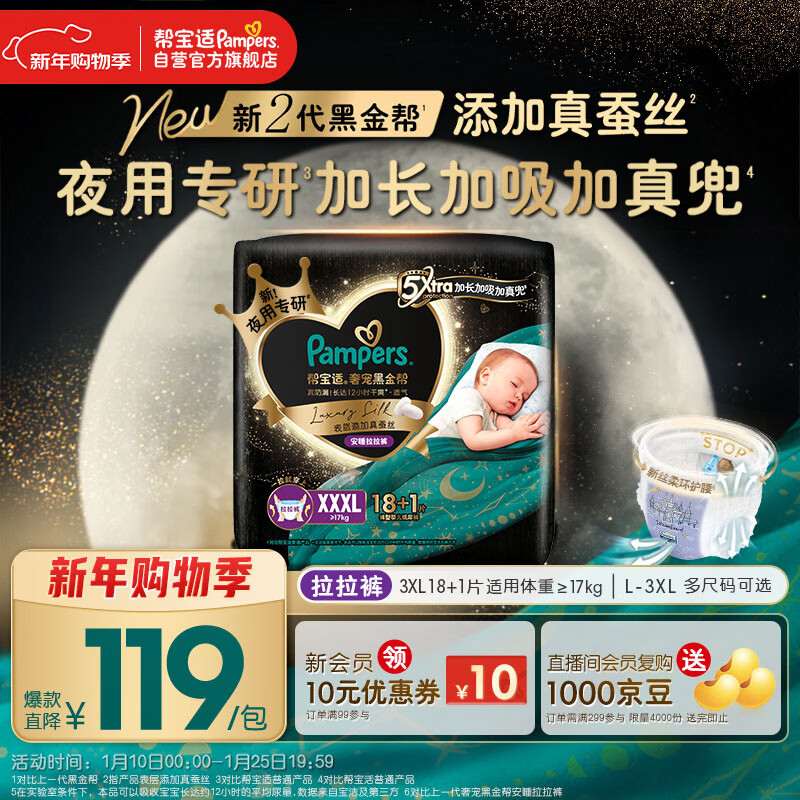 帮宝适夜用专研黑金帮安睡拉拉裤婴儿尿不湿安睡一整夜 超薄XXXL18+1
