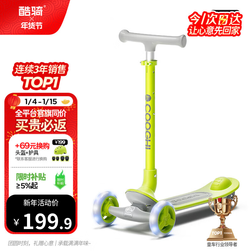 酷骑儿童滑板车Q1溜溜车折叠款重力转向发光轮3-10岁生日礼物酷骑绿