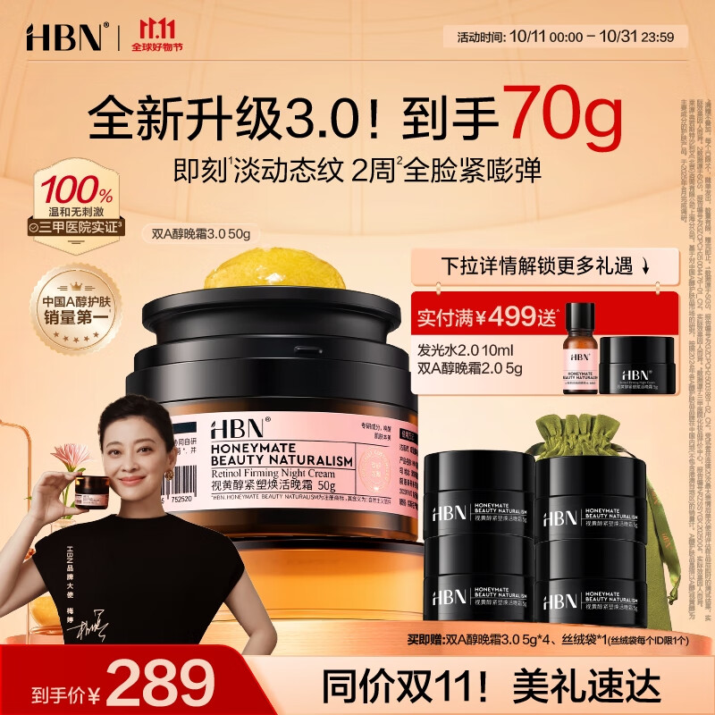 HBN【双11抢先购】双A醇晚霜3.0抗皱紧致淡纹滋润保湿霜送女友