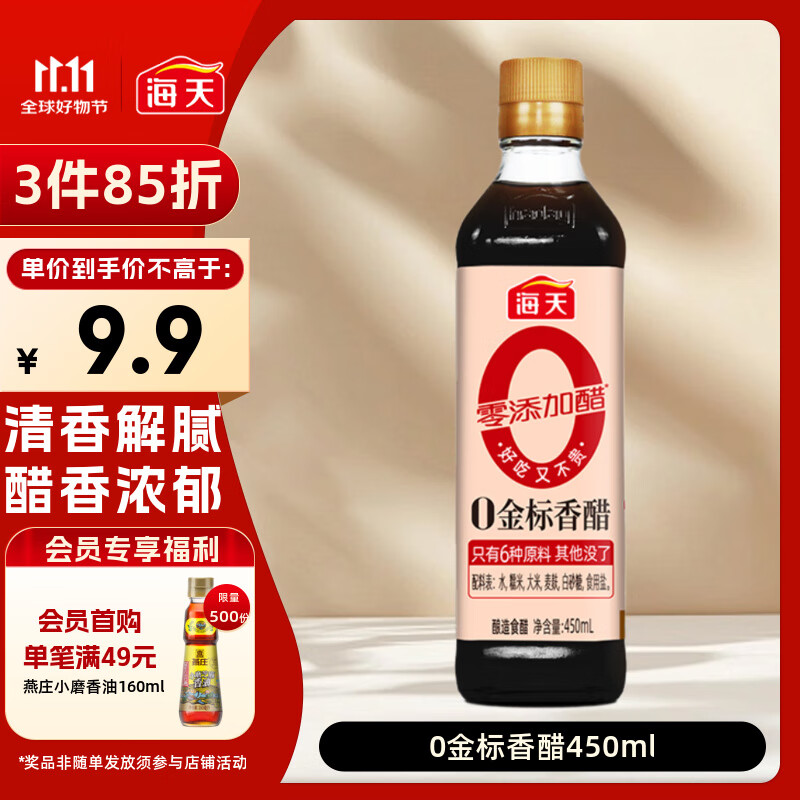 海天 香醋 【0金标 0添加】5度 450ml 谷物酿造 点蘸凉拌