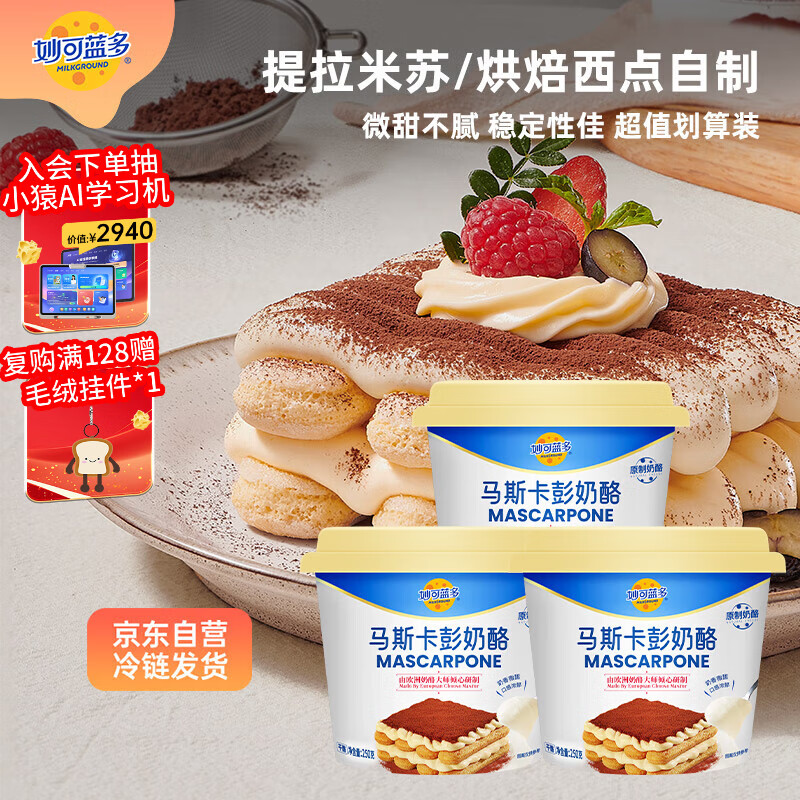 妙可蓝多马斯卡彭250g*3 原制奶酪 提拉米苏 西点 甜点 烘焙原料