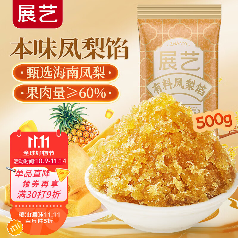 展艺凤梨馅料500g 凤梨酥蛋黄酥雪媚娘披萨挞包子馅台式月饼烘焙原料
