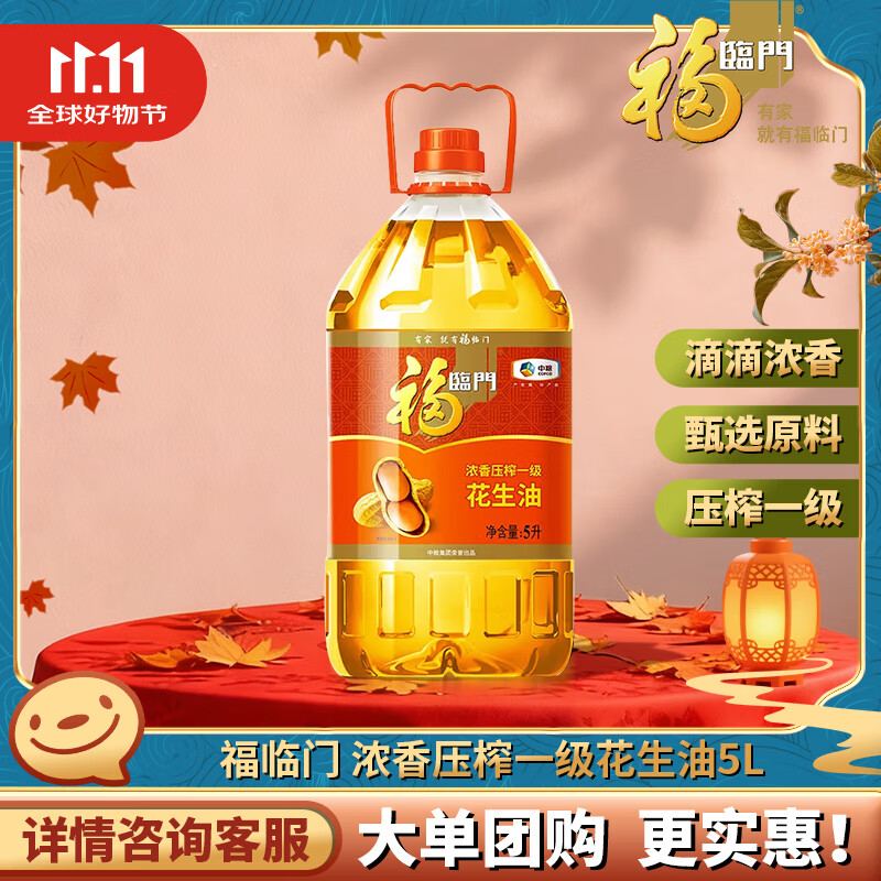福临门 食用油 浓香压榨一级 花生油5L 中粮出品
