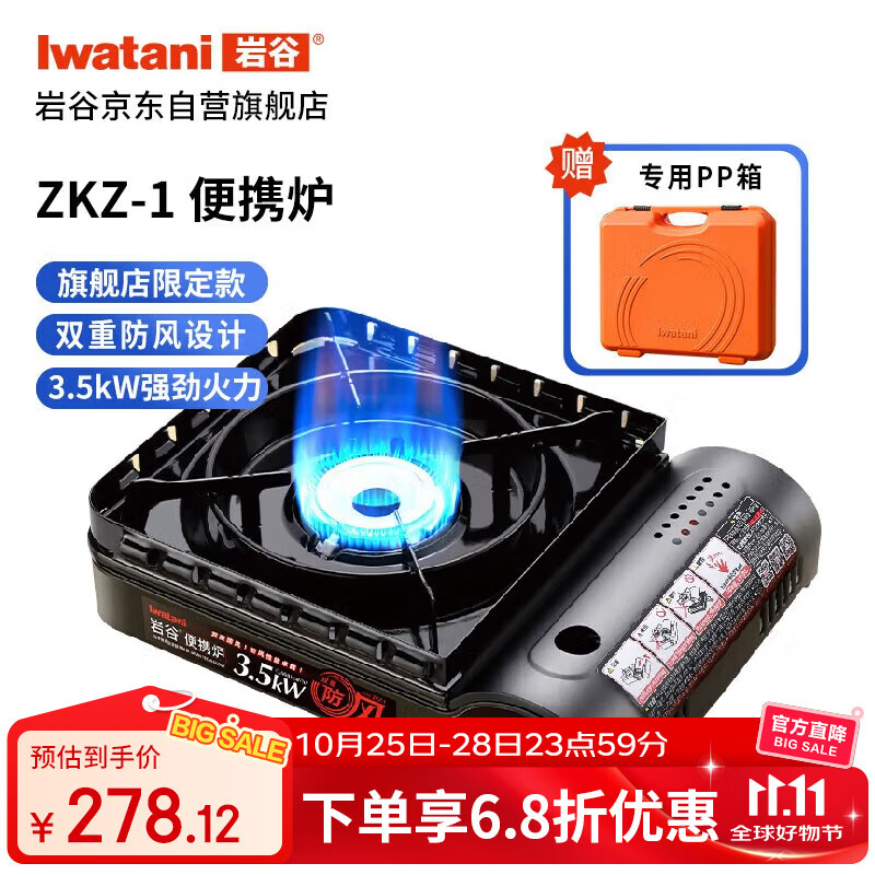 岩谷(Iwatani)户外双重防风卡式炉 便携炉露营燃气炉 3.5kW强劲火力 限定ZKZ-1