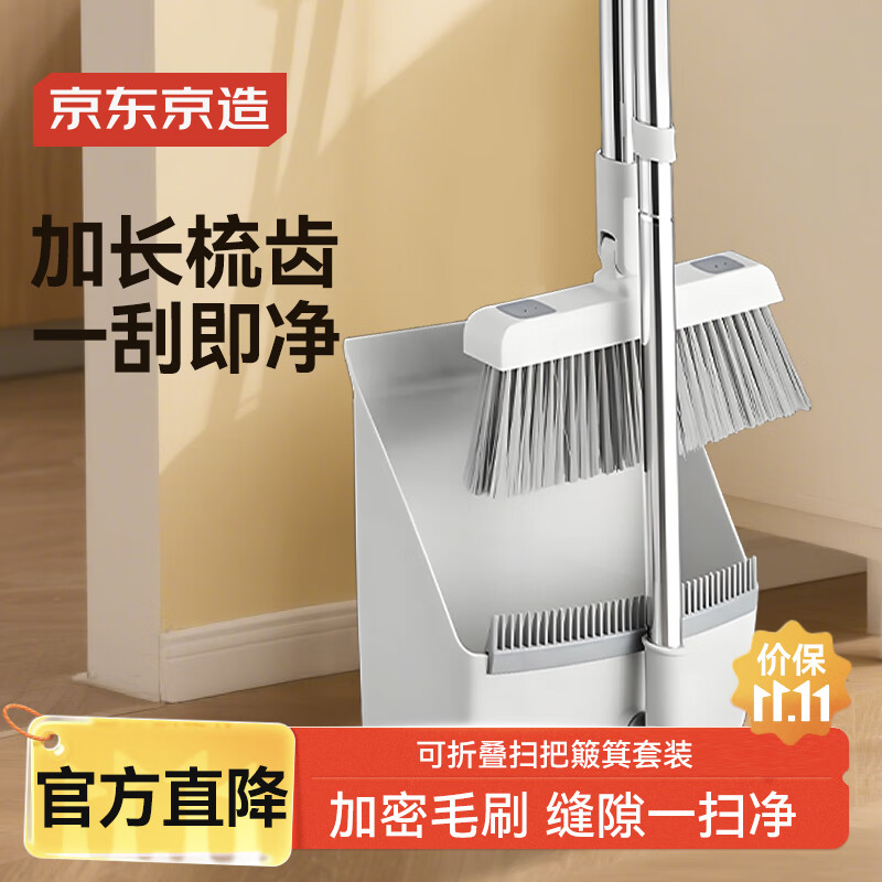 京东京造可折叠扫把簸箕套装 家用清洁垃圾铲加长加密梳齿 笤帚扫帚两件套