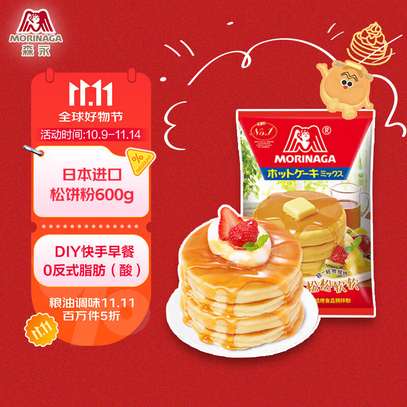森永(Morinaga)进口松饼粉600g 蛋糕预拌粉早餐面包粉广式华夫饼粉烘焙原料