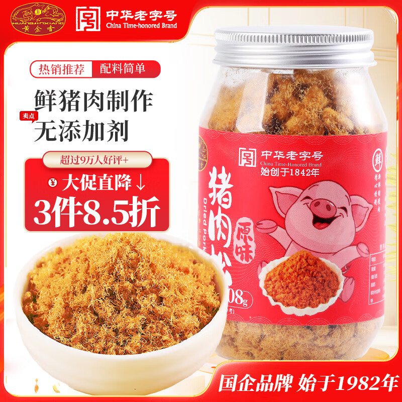 黄金香 高端无添加剂原味猪肉松108g寿司肉松烘焙 儿童孕妇宝宝拌饭零食