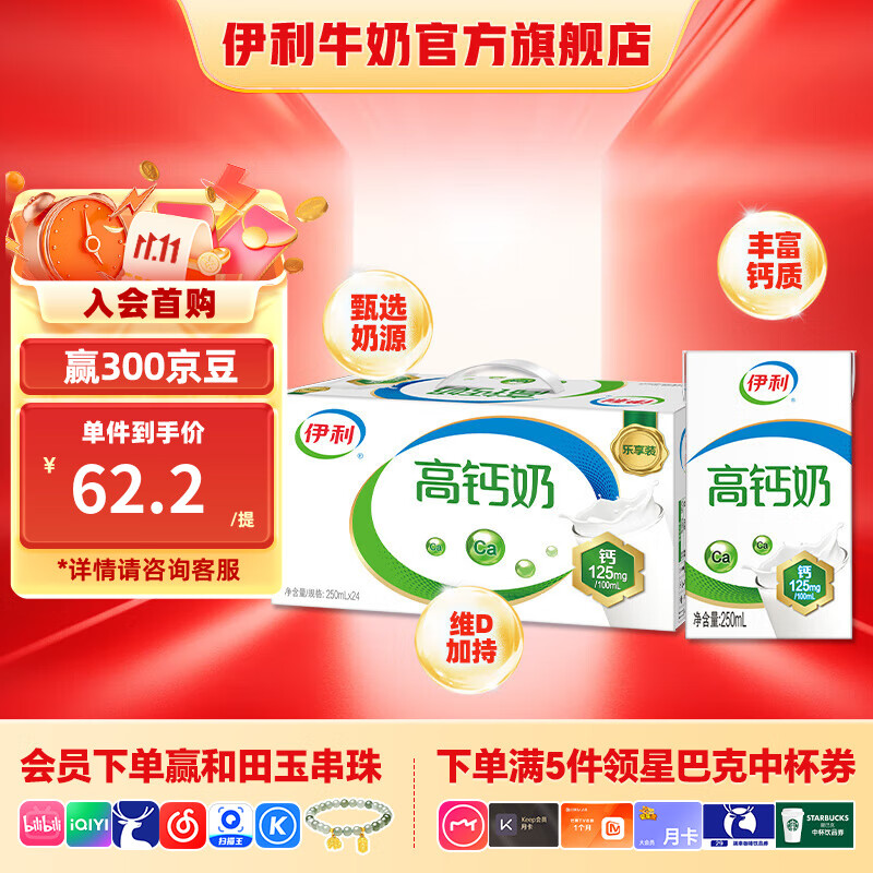 伊利高钙奶250ml*24盒 多25%钙质 125mg/100ml钙含量 8-10月