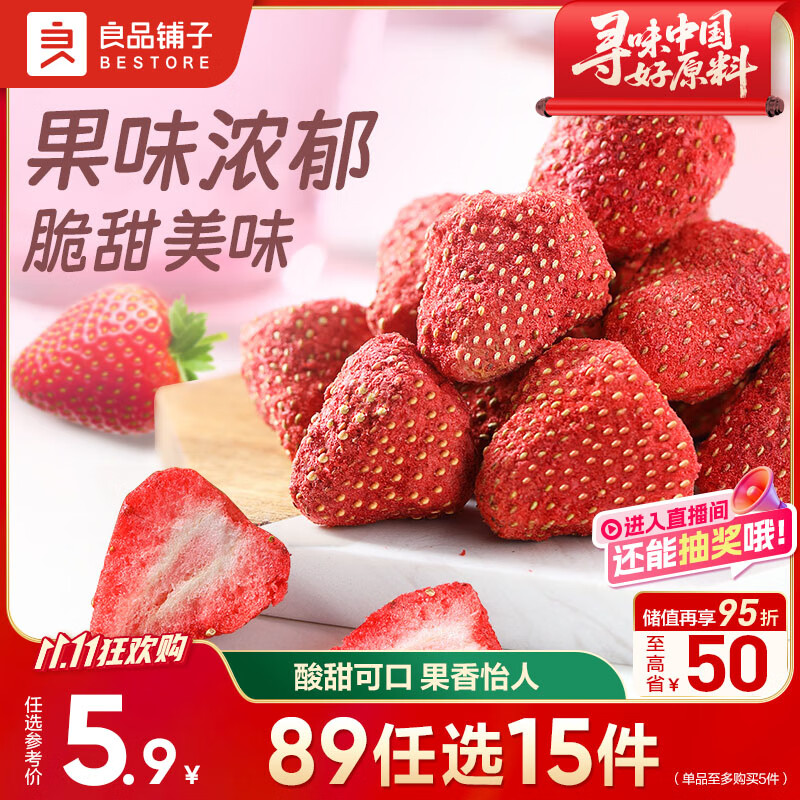 良品铺子 草莓脆20g 冻干草莓干水果干零食办公室小吃果干蜜饯休闲食品
