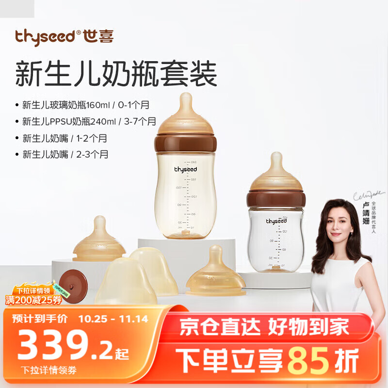 世喜新生儿防胀气奶瓶0-6个月以上玻璃婴儿仿母乳奶嘴(160ml+240ml)