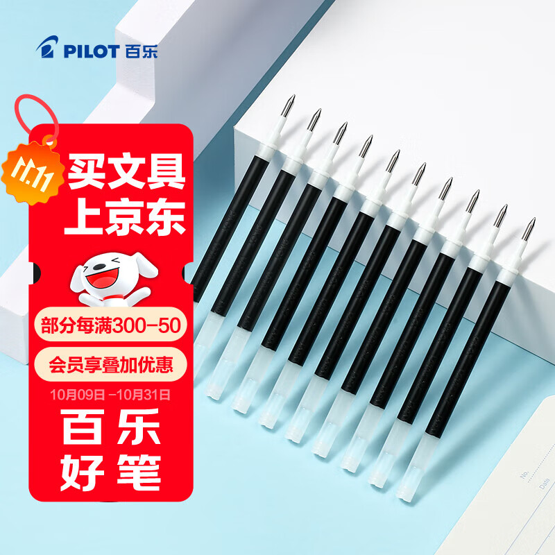 百乐(PILOT)【热门商品】Juice果汁笔芯按动黑色0.5中性笔芯子弹头签字练字水笔替芯进口文具LP2RF-8EF-B 10支