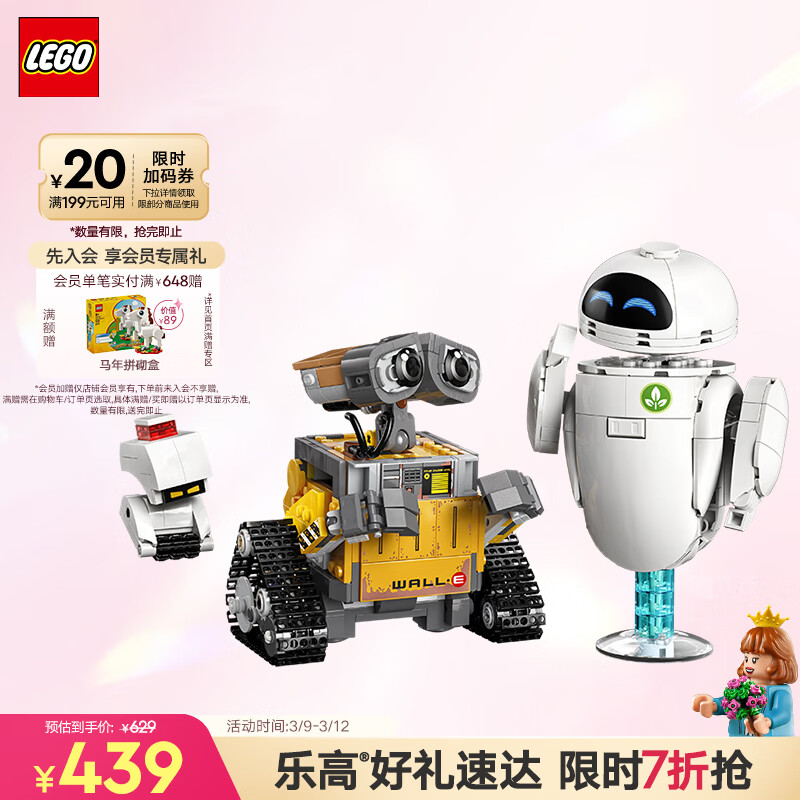 乐高(LEGO)积木迪士尼43279 瓦力与伊娃机器人男女孩玩具生日女神节礼物装饰