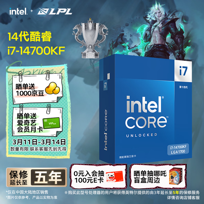 英特尔(Intel)酷睿14代 i7处理器14700KF 20核28线程 五年质保 盒装台式机CPU 游戏办公剪辑
