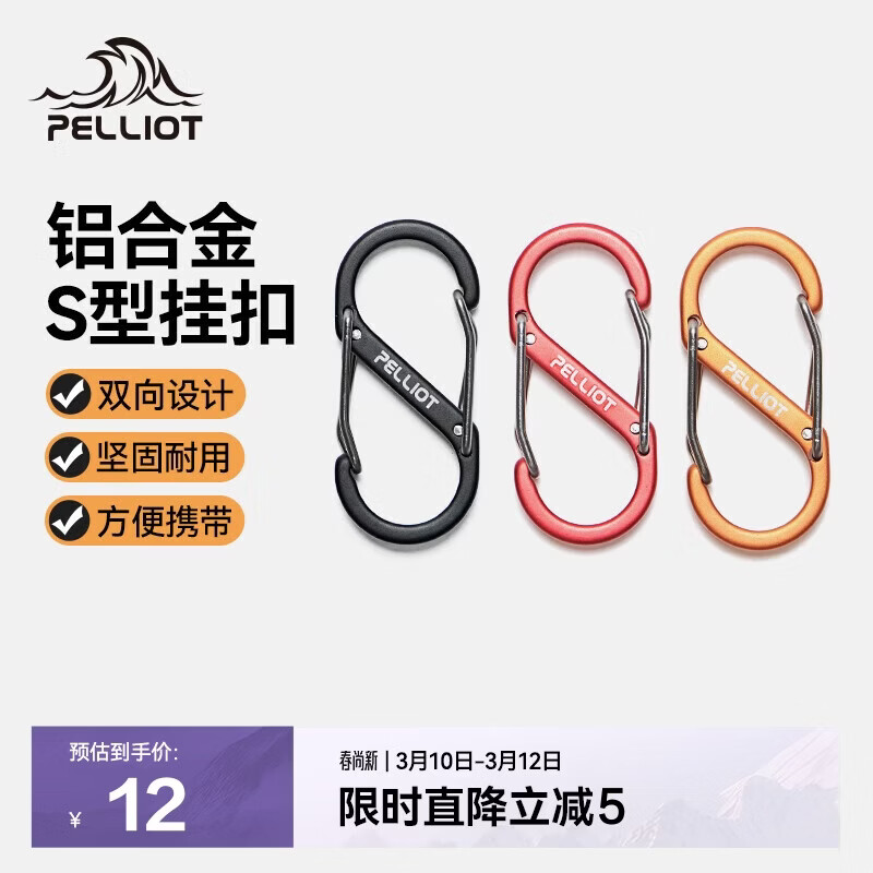 伯希和(Pelliot)登山扣八字扣S型挂扣户外背包挂钩钥匙安全扣16206802黑小号4个装
