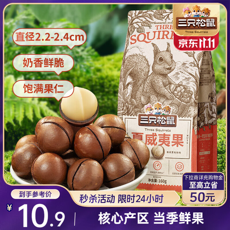 三只松鼠奶油味夏威夷果 坚果炒货干果孕妇休闲零食小吃160g/袋