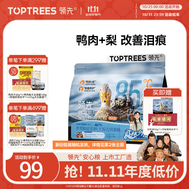 领先鸭肉梨低温烘焙狗粮清火配方成幼犬无谷犬粮泰迪比熊柯基1.5kg