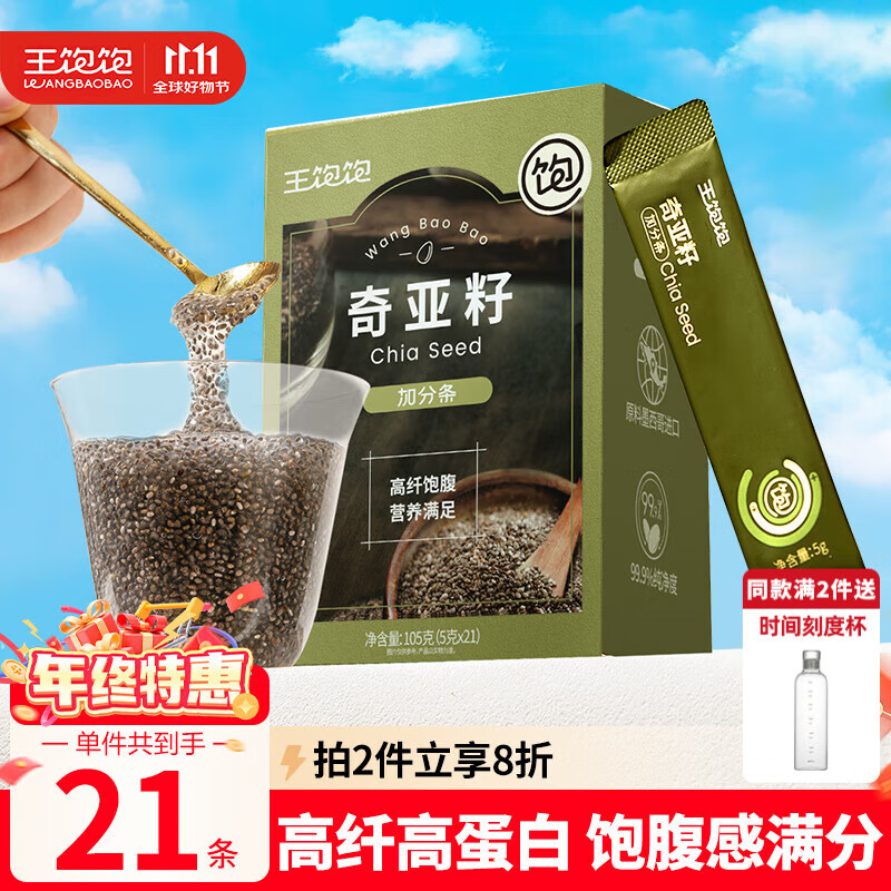王饱饱 奇亚籽5g*21条即食高膳食纤维高蛋白代餐冲饮
