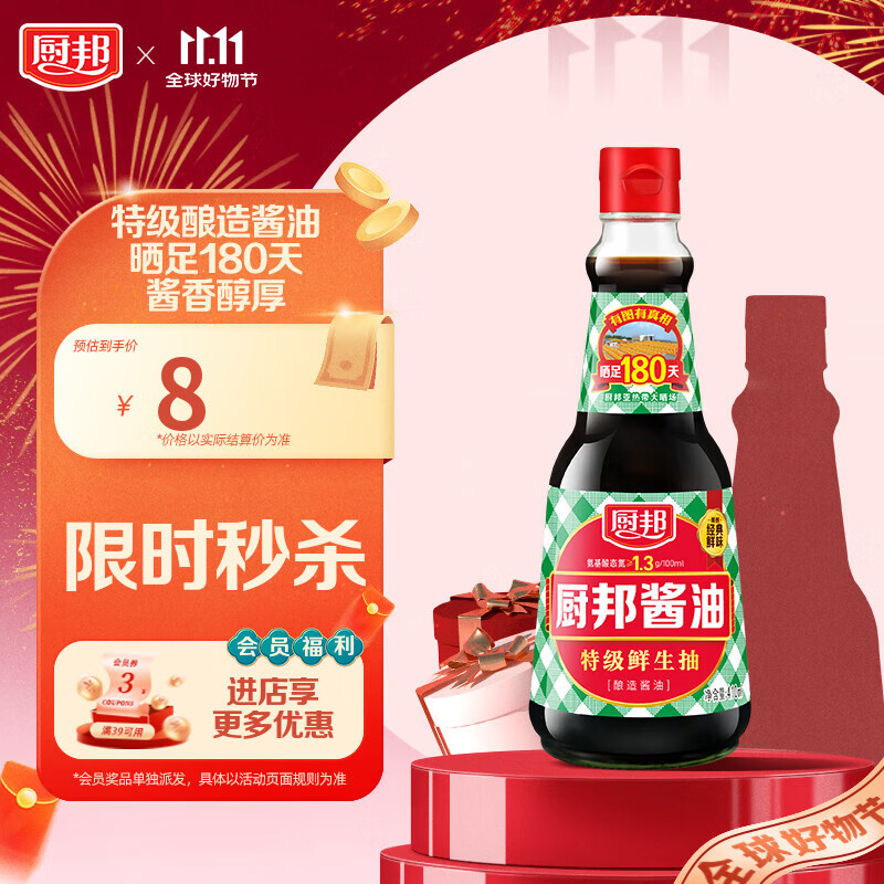 厨邦 经典系列 厨邦酱油410ml【特级】 高鲜生抽 酱油 炒菜提鲜调味