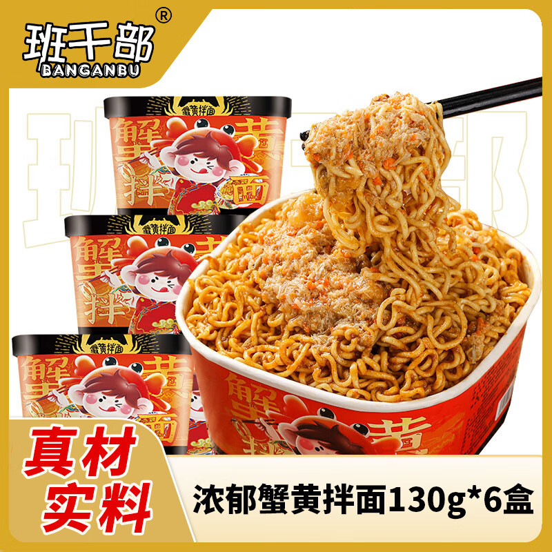 班干部(BANGANBU)蟹黄拌面130g*6盒 泡面蟹黄酱拌面干拌面方便面免煮冲泡即食速食