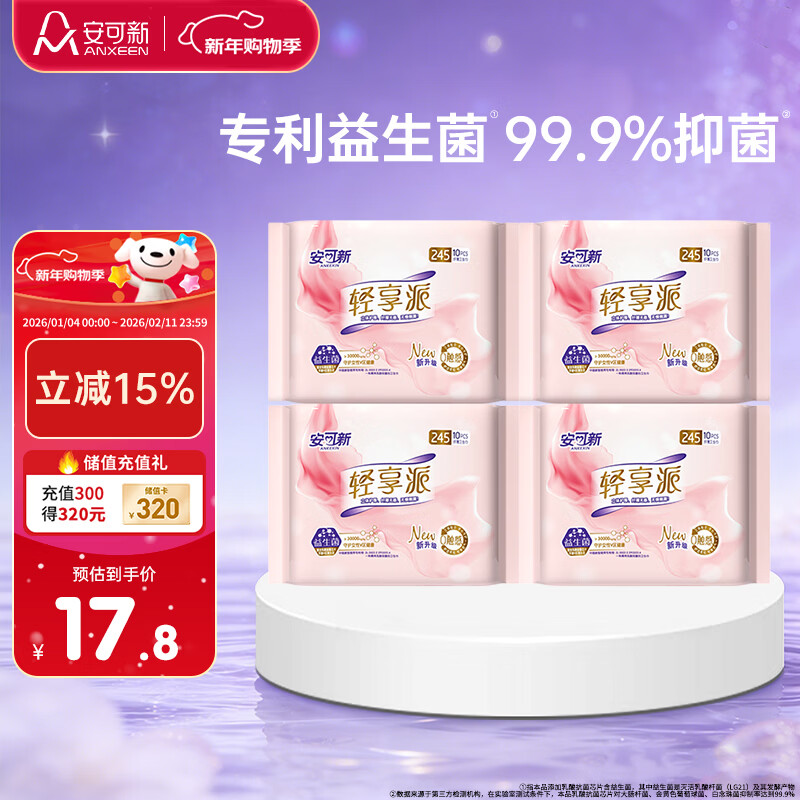 安可新卫生巾日用姨妈巾女经期用孕产妇益生菌专利弱酸特护级245mm40片