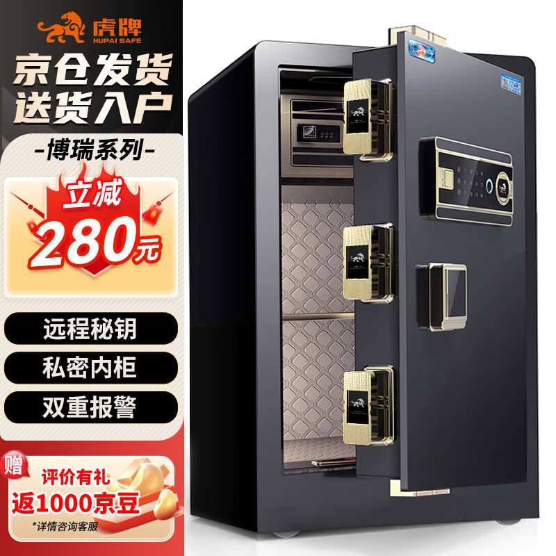 虎牌保险柜家用小型指纹密码办公财务专用保险箱全钢防盗可入墙保密保管柜 博瑞系列 60cm 钢琴黑