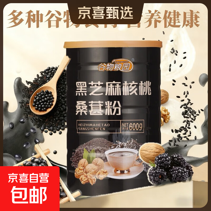 谷物粮园黑芝麻核桃桑葚粉罐装早餐五黑方便冲泡营养代餐黑芝麻糊 罐装黑芝麻核桃 桑葚粉【600克】 1罐