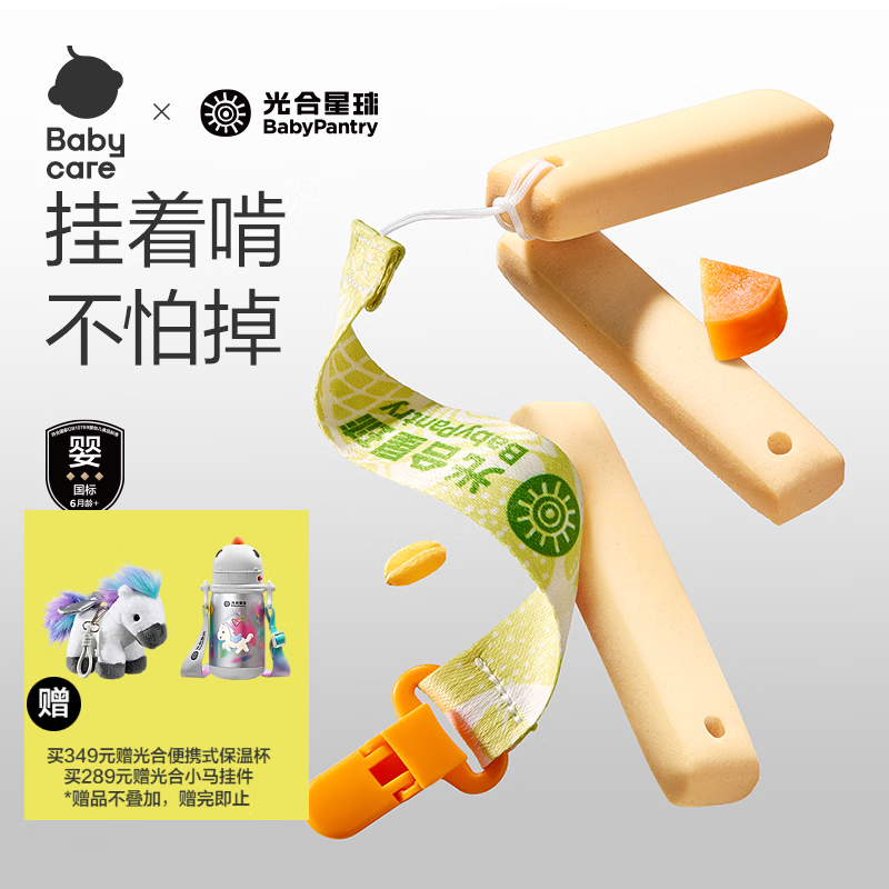 光合星球babycare儿童零食宝宝婴幼儿磨牙棒蔬菜味64g6月【升级带孔防滑】