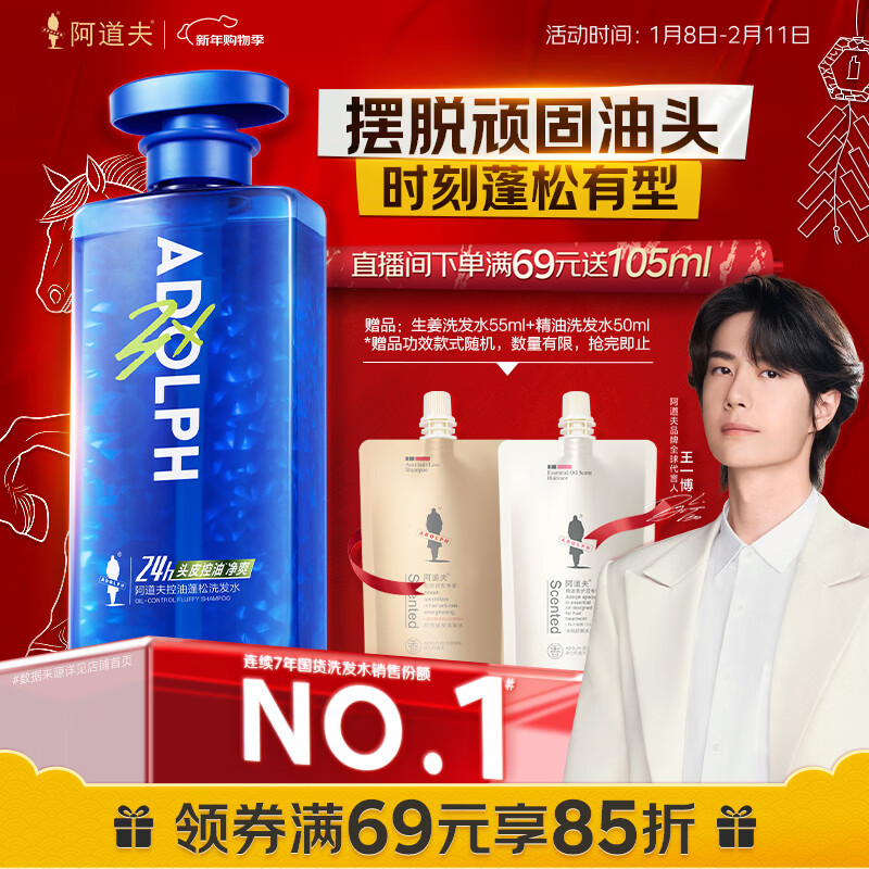 阿道夫控油蓬松洗发水500ml 氨基酸头皮去油止痒 无硅油男士专用洗头膏