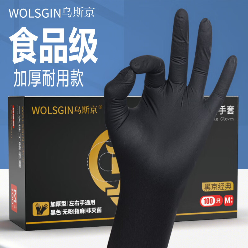 乌斯京一次性手套丁腈橡胶100只L大码 防护加厚耐用餐饮食品级丁晴手套