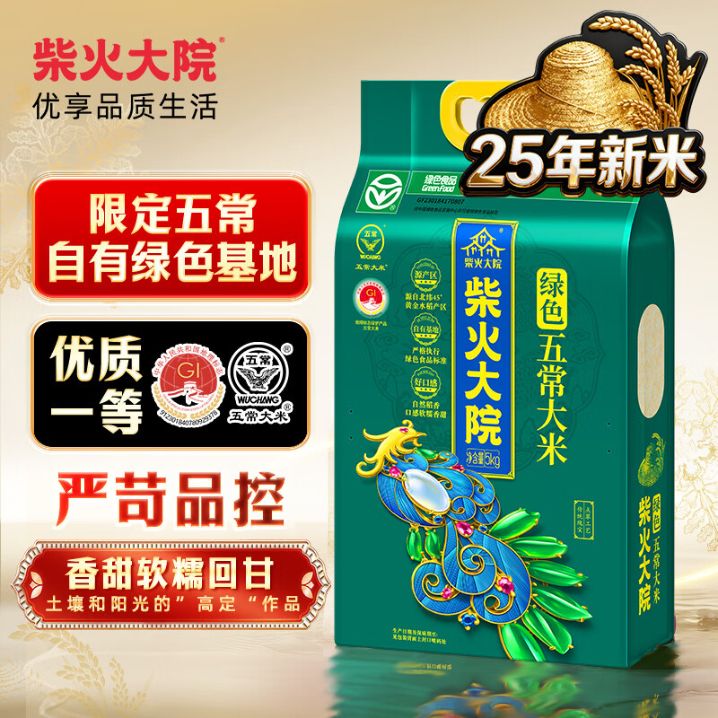 柴火大院 25年新米上市 绿色五常大米 5kg(东北大米 香米10斤装)