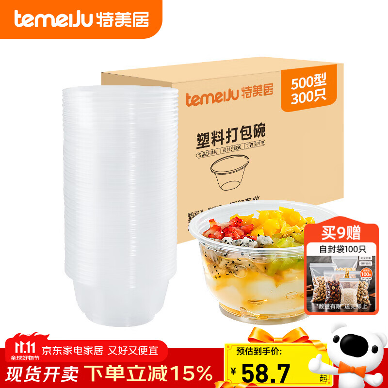 特美居(temeiju)一次性饭盒圆形透明吸塑快餐盒加厚打包盒汤碗不带盖300只装500型