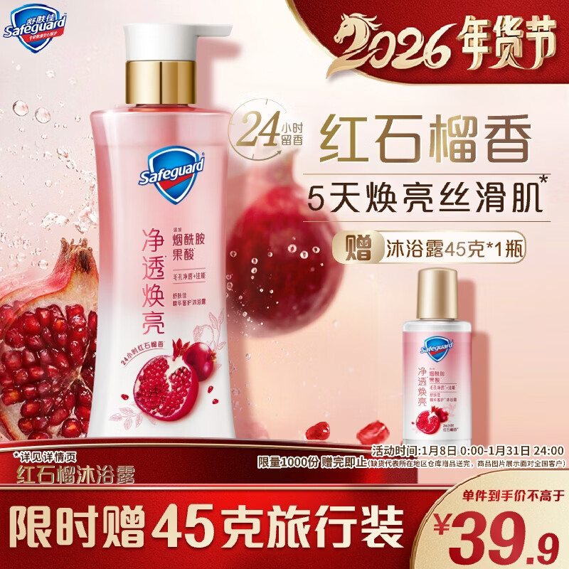 舒肤佳新升级净透沐浴露红石榴380g含烟酰胺焕亮持久留香 男女士通用