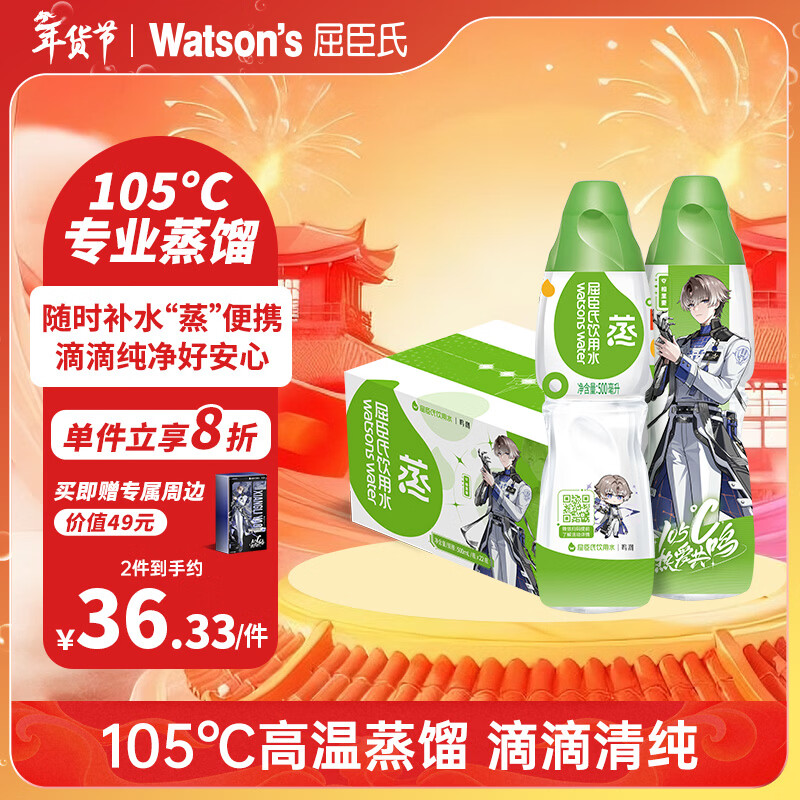 屈臣氏蒸馏水纯净水500mL*22瓶整箱瓶装水(随箱赠周边1份)鸣潮相里要