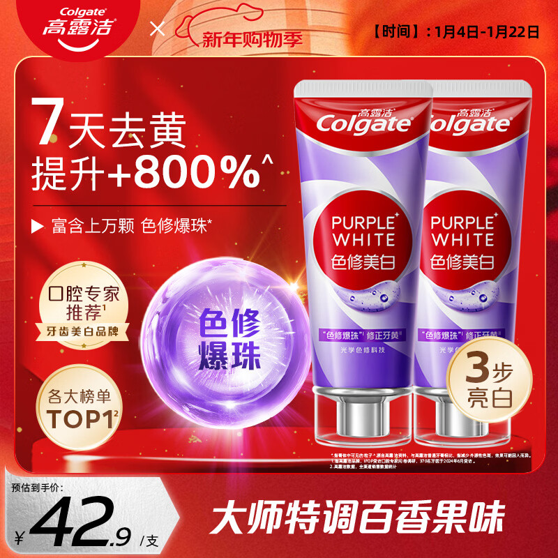 高露洁(Colgate)色修美白牙膏180g去牙渍清新口气新老包装混发