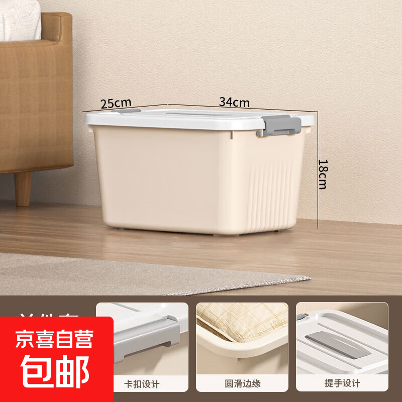 京东物流 大容量收纳箱收纳家用衣服加厚塑料储物整理箱衣物收纳 奶油色大号 34*25*18cm