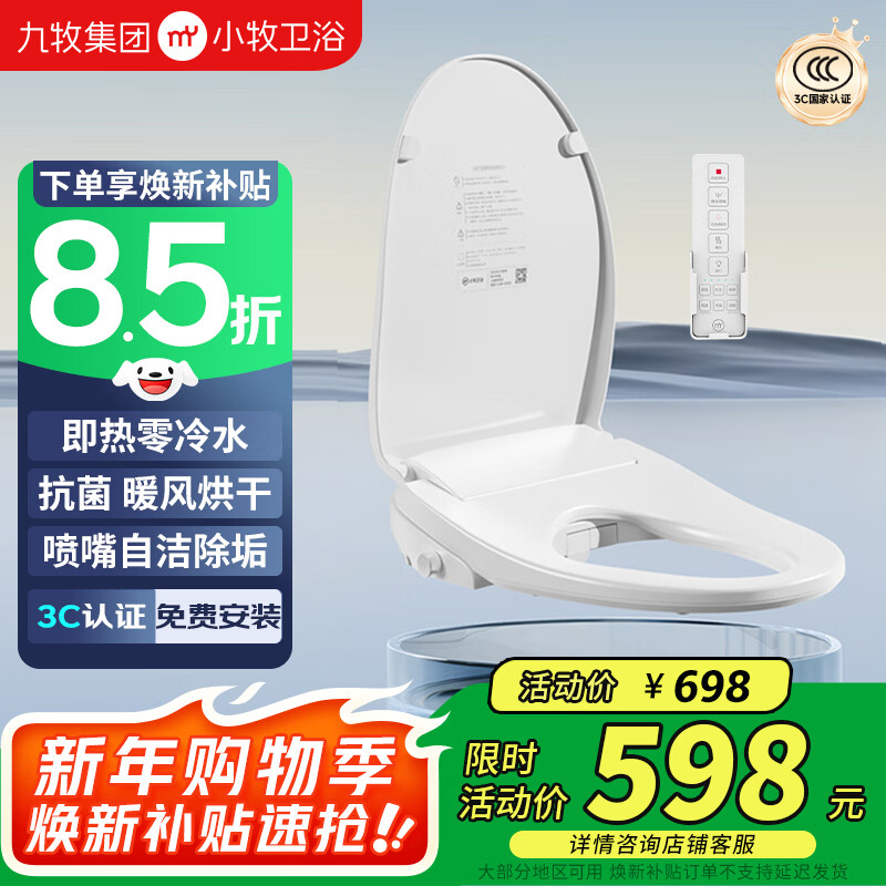 小牧卫浴智能马桶盖九牧京东集采JC系列抗菌座圈加热臀部清洁S3 京东送装