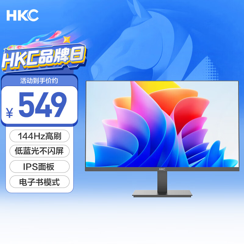 HKC 27英寸144Hz高刷IPS面板1080P低蓝光不闪屏99%sRGB广色域电子书电脑外接电竞游戏办公显示器V2719