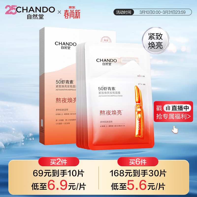 自然堂虾青素紧致焕亮安瓶面膜*5片 补水保湿紧致舒缓生日礼物女