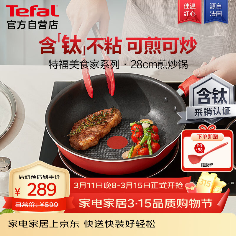 特福(Tefal)炒锅家用不粘锅平底炒锅28cm炒锅电磁炉燃气灶通用有钛