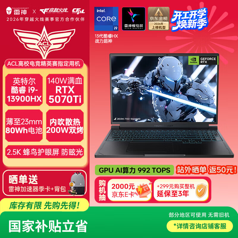 雷神猎刃S 16英寸学生游戏本笔记本电脑(i9-13900HX RTX5070Ti 16G1T 240Hz蜂鸟屏)国家政府补贴