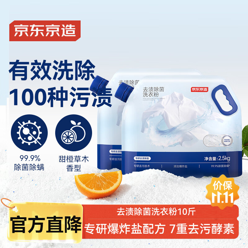京东京造 去渍除菌洗衣粉10斤 除菌率99.99% 专研爆炸盐配方深层去污