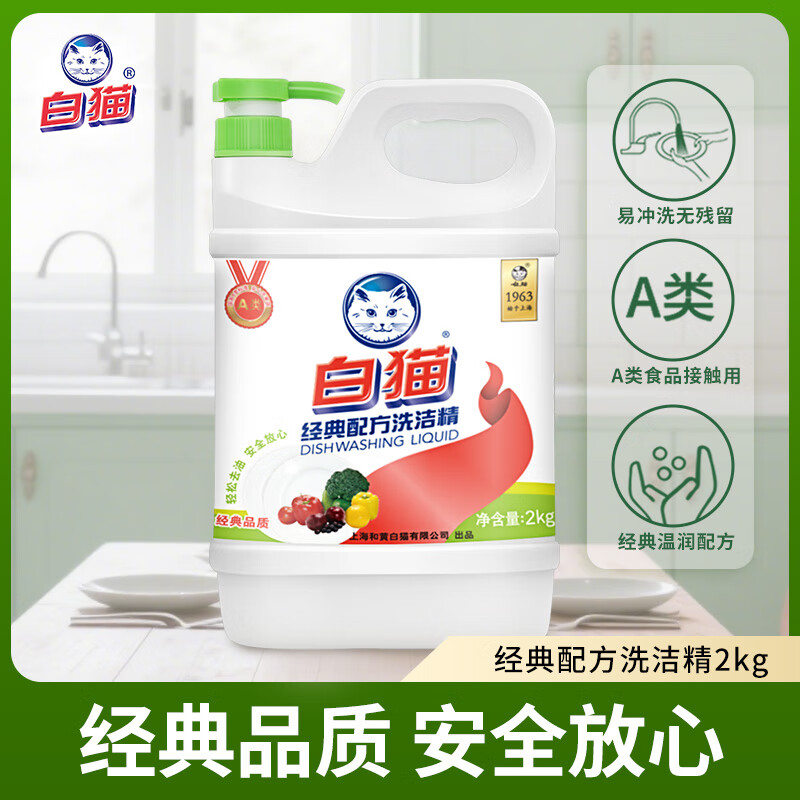 白猫 经典配方洗洁精2kg 去油除腥清爽柠檬香型 洗洁精 洗涤灵 洗洁剂