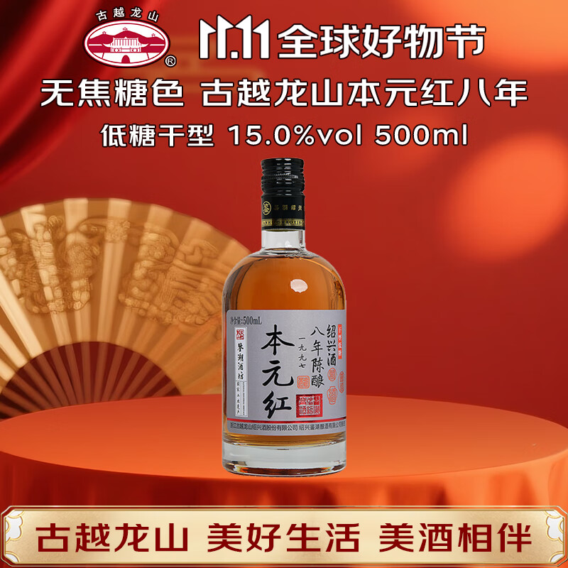 古越龙山 鉴湖酒坊八年 干型 绍兴黄酒 500ml 单瓶装 低糖 无焦糖色