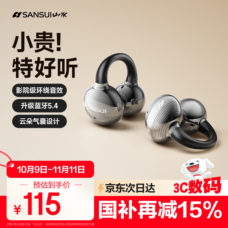 山水W39【澎湃低音】蓝牙耳机骨传导概念耳夹开放无线夹耳式金榜第1名不入耳降噪运动排行前十适用华为