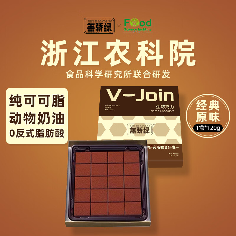 无骄绿 原味生巧克力 120g 盒装 浙江农科院 纯可可脂 0反式脂肪酸 送礼