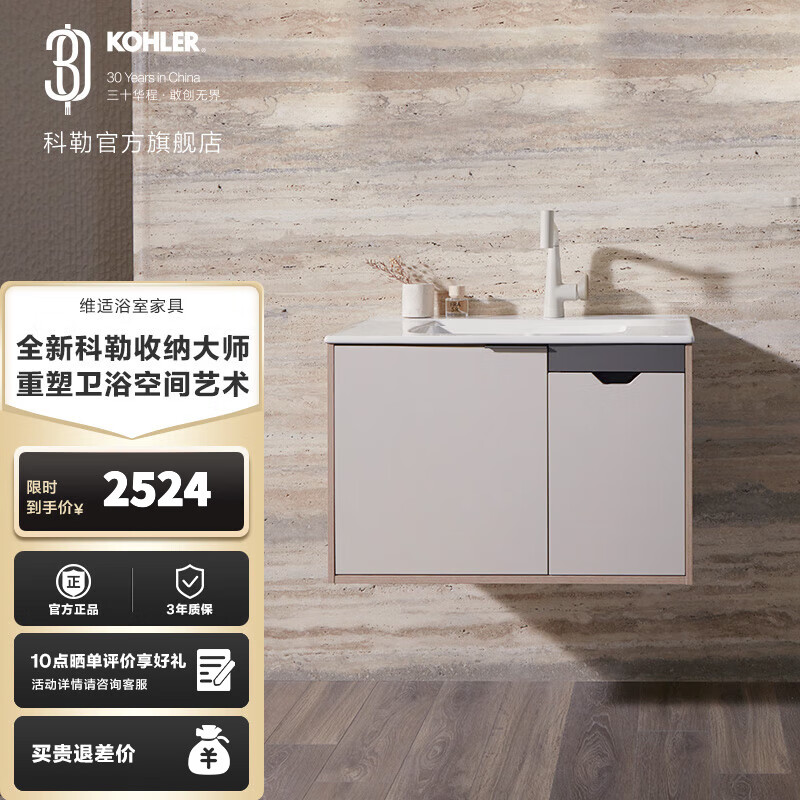 科勒(KOHLER)维适卫生间台盆柜子洗手间家具镜柜浴室柜组合 预售30天内发货 维适浴室柜 800mm-奶油杏